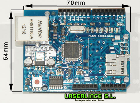 Está basado en el chip Wiznet W5100 Ethernet que le permite conectarse fácilmente a internet.